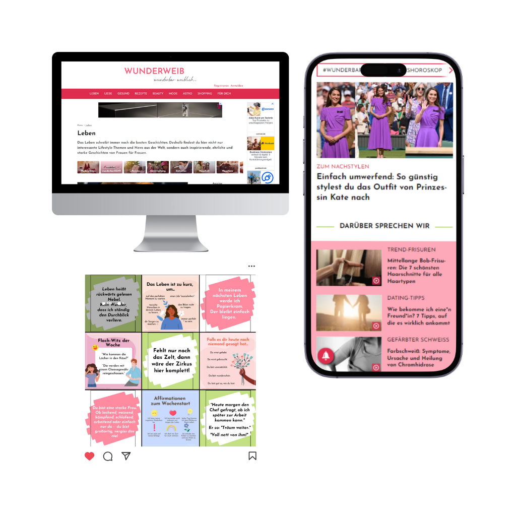 WUNDERWEIB.de — популярное онлайн-сообщество, посвященное различным женским темам. На веб-сайте представлены последние новости, статьи об образе жизни, советы по красоте и моде, советы по здоровью, советы по отношениям и развлекательный контент.